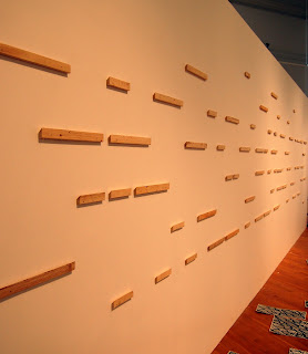 I put pins and a piece of wood on the back to extend the print out from the wall a little... perhaps done more easily with just long pins. I used the strip on the wall because it was there, but even 2 push-pins can (temporarily) hold this set-up.