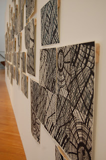 My work comes from an interest in perception, contradiction and translation. Through relief printmaking I discover and alter patterns from familiar imagery. By taking one idea and turning it into many, I create seemingly identical, but slightly altered, complicated, and purposefully concealed images.