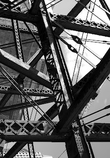 My original photo (from the bridge by the ICA) and print. I'm still debating on adding another block to the bottom to make it 3 total. This should hopefully help link it better to the circles below. I need to work out some color connections, too.