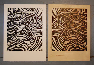 Printed the woodblock with water-soluble ink (a mix of black and brown to lighten it up a bit).I like how they flow into each other - I may flip-flop pieces so that they all somehow connect once displayed.